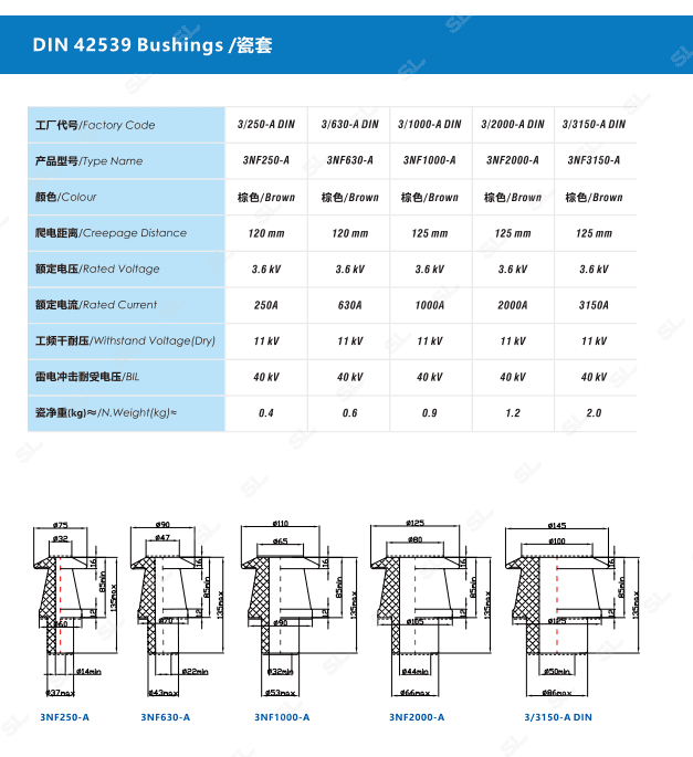 3kV250A-3150A DIN - Top; 3kV250A-3150A DIN - Bottom